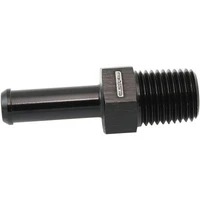 These handy NPT to straight hose barb fittings are designed to allow easy fuel line installation on electric fuel pumps and regulators when using rubber fuel line. They have a male NPT fitting on one end and a barbed fitting on the other end and they're available in different sizes to fit your needs.These barb sizes are designed to work with Aeroflow400 series and 500 series PushLock Rubber hose. Available invarious sizes with Blue, Blackand Silver finishes.
