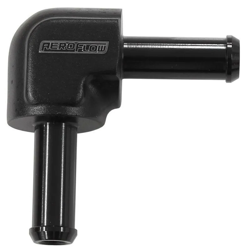 These 90-degree hose barb to hose barb fittings are ideal for general plumbing applications using traditional rubber hose. They have a 90-degree elbow shape for connecting hose to hose at an angle. This is great for a fixed tight angle connection between rubber hose when it cannot bend without kinking the hose itself.  They come in sizes from 5/16” (7.94mm) up to 3/4” (19mm) and three colours Blue, Black and Silver.