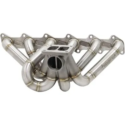 Aeroflow Performance stainless steel steampipe turbo manifolds are a series of pipes that collectexiting exhaust gases which can be channelled into our merge collector which are perfectly matched to our Boosted range of turbochargers. Our merge collector design allows all pipes to enter at the exact same angle, and merge togetherat a point in the middle, pointing straight into the turbine. No pipes enter acrosseach other, so airflow is not disrupted, meaning a perfect balance between boost control and flow. With minimal back pressure where the manifold meets the turbo, you can be sure that you're getting the best flow possible from our turbo manifold.