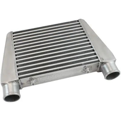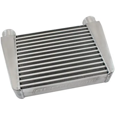 The Aeroflow Performance Street series intercoolers have become quite a popular choice amongst the automotive scene as they are known for their great value and top quality proving to exceed expectations at just a fraction of the price. These V-mount intercoolers are specifically designed for v mount applications or can be used in any universal applications where the intercooler can be mounted horizontal with the inlet and outlets on the top of the intercooler. Made from a durable alloy which is TIG welded. All intercoolers are pressure tested with a recommended maximum of 50psi (3.44 Bar). Aeroflow street series intercoolers are designed with a tube and fin core which offer a low pressure drop which helps withstability on turbo applications. They are available in one universal cores size with 63mm (2-1/2”) inlets and outlets that have a raised lipfor securing silicone hose. Each intercooler features two female M8x1.25mm mounting bosses and are available in silver or black powder coated finishes.