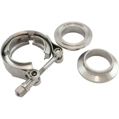 Aeroflow Performance V-Bandkits make it easy to install and remove exhaust systems andturbo parts. The self-aligningV design weld flanges have been designed with a male to female connection which not only helps align the bands butalso provides multiple sealingsurfaces which prevent leaks and warping. These self-aligning V band exhaust clamps are uniquely designed to help keep your exhaust system operating properly and,even more importantly, allow you to disassemble your systemfor service or to repair othersystems on your vehicle.
