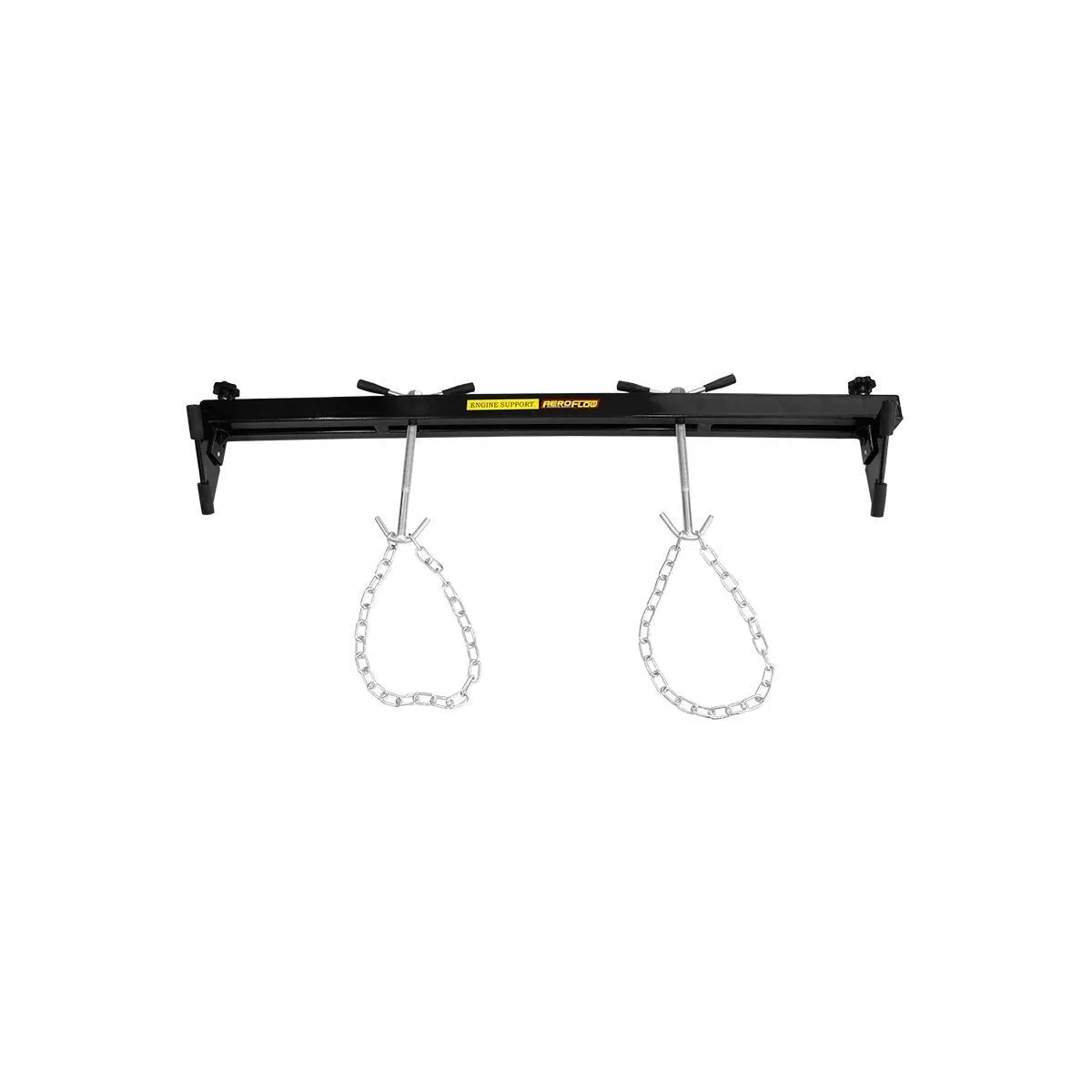 The Aeroflow Performance Engine Support Bar allows you to hold your engine and transmission in place while you remove your sub-frame or engine mounts for repairs without removing the engine from the vehicle. It features dual hook assemblies for increased load balance when working on heavy engines or when removing the transmission or transaxle. This engine support bar comes with adjustable extension arms, adjustable height set screws and neoprene support pads which prevents slippage as well as damage to paint.  Each engine support bar is adjustable to accommodate most vehicles on the market and a each is supplied short length of chain.