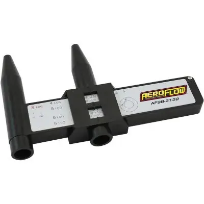 Not sure of your stud pattern? This is a handy tool from Aeroflow is great to have in your shed or workshop. A ruler cannot be used to work this out, as the measurements relate to the diameter of the pitch circle, rather than the distance between stud holes. The PCD gauge bolt pattern sliding tool is the fastest and easiest way for working out what your wheel or hub?s stud pattern is.
