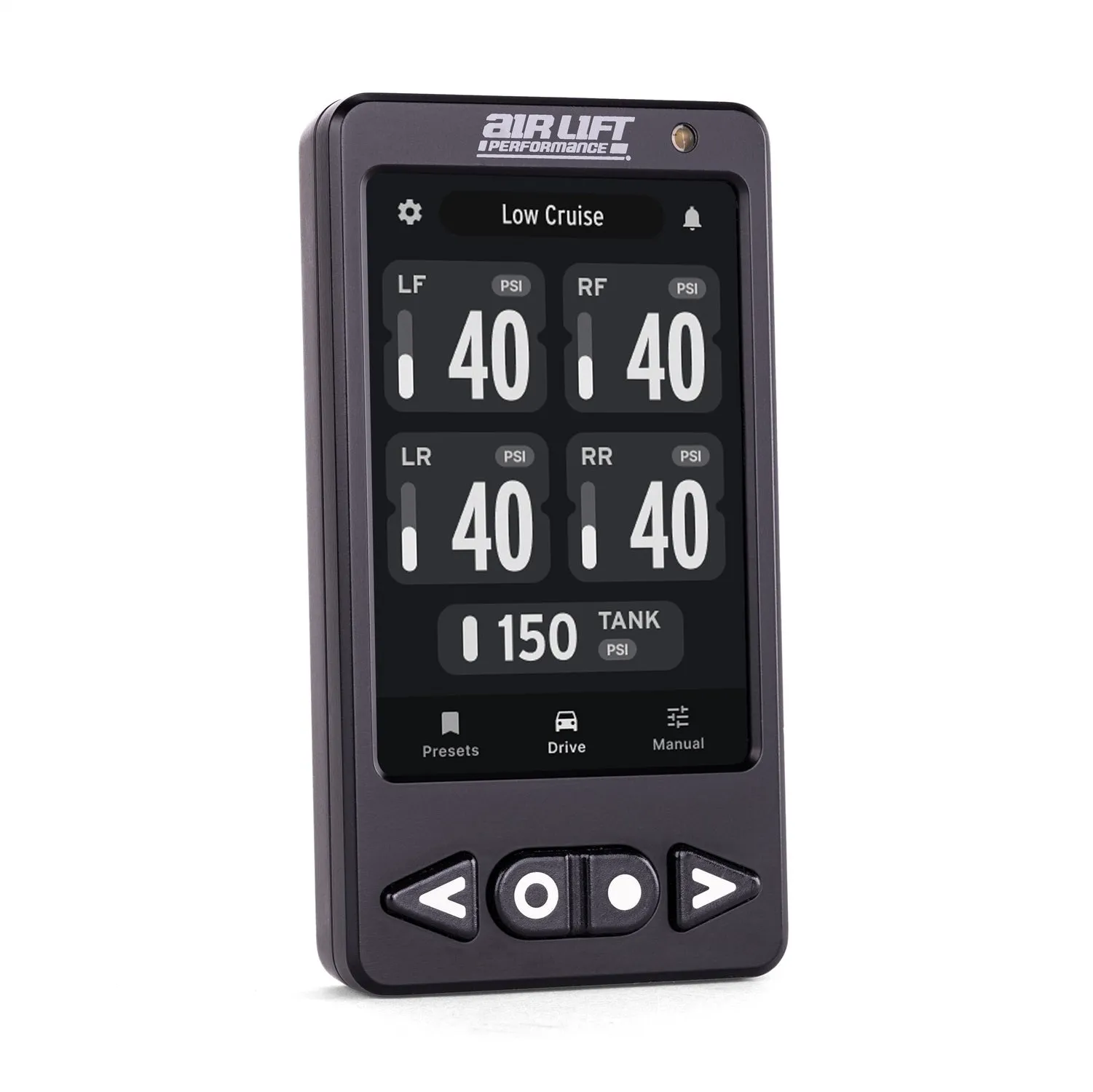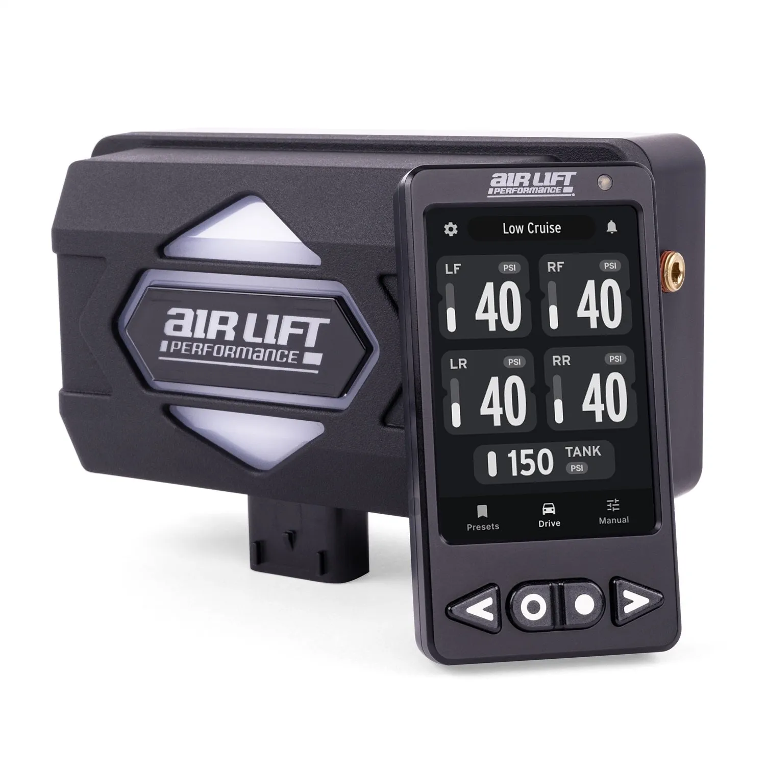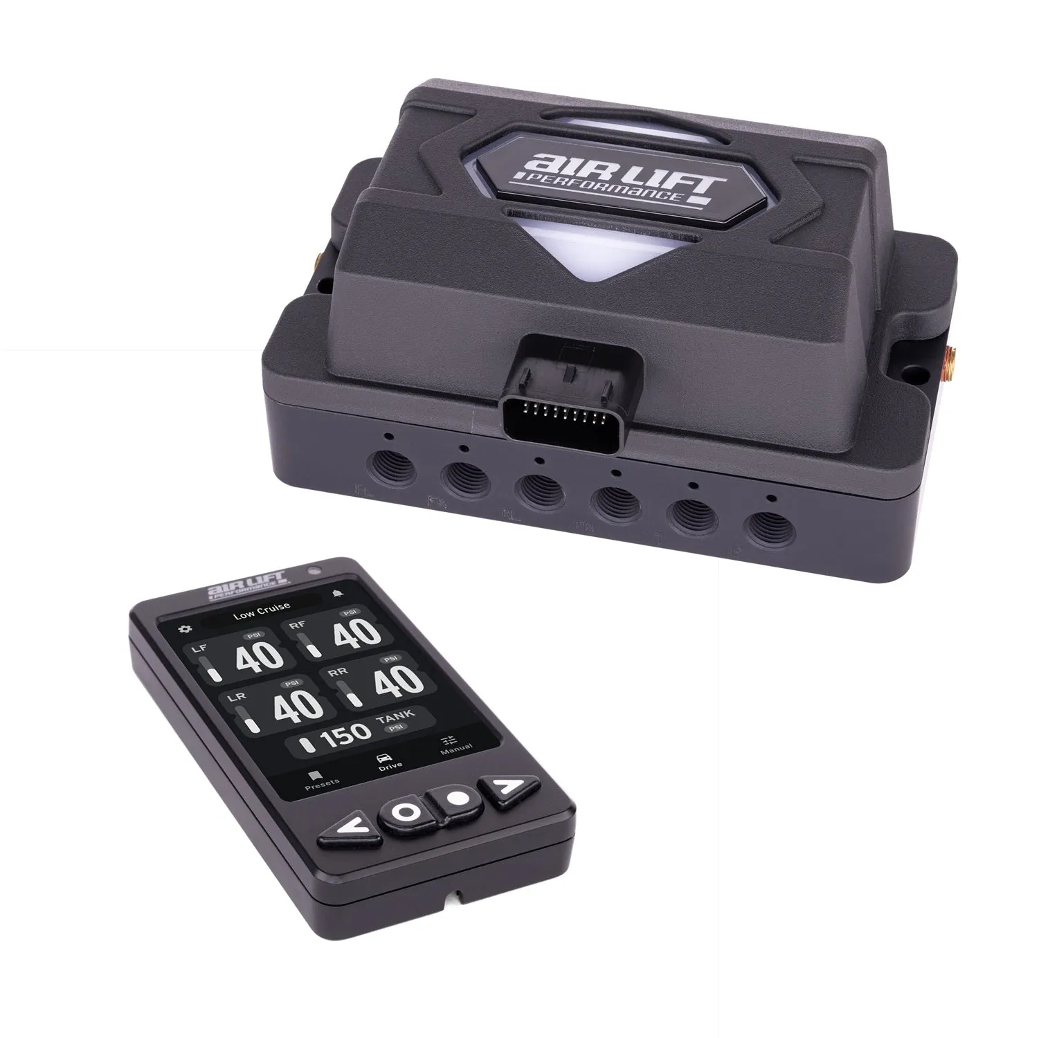 Air Lift Performance’s ALP4 is a pressure-based air management system with preset ride pressures and real-time monitoring, allowing for fine-tuning of your suspension and a user-friendly design, PN 27480.