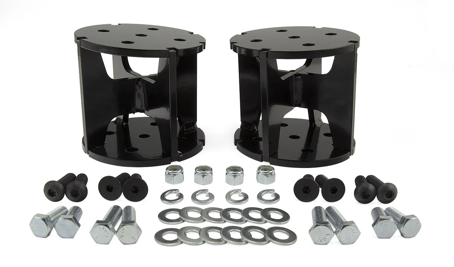 For drivers of lifted trucks, it's common to find that the towing and hauling capabilities of the stock suspension are compromised. With the new Universal Air Spring Spacers from Air Lift, drivers are now able to add a load support solution and restore the full potential of the vehicle. Available in 2 in. straight, 4 in. straight, 6 in. straight, 4 in. angled, and 6 in. angled varieties, the Universal Air Spring Spacers are designed to accommodate most lift kits, up to six inches. With a unique spinal design, the spacers are easy to attach to bellows-style air spring systems, including Air Lift's best-selling LoadLifter 5000 series and LoadLifter 7500 XL, using the provided hardware. With air springs equipped, drivers of lifted vehicles will find that the towing and hauling capabilities of their vehicles are restored. Adding air springs will eliminate many common issues faced when towing and hauling heavy loads, including squat, poor headlight aim, trailer sway, and bottoming out. Drivers and passengers alike will notice that handling, ride quality, and braking power are all greatly improved. Each Universal Air Spring Spacer kit comes with a clear, easy-to-follow, fully illustrated instruction manual to make the installation process easy, clear and simple. As the leader in air suspension products for more than 70 years, Air Lift is committed to delivering quality load support parts that last. The key suspension components have all been torture-tested to ensure the highest quality, longevity, and customer satisfaction. With a limited-lifetime warranty, you can purchase this kit with peace of mind. Take your existing air suspension solution to the next level of safety and comfort with Universal Air Spring Spacers today!