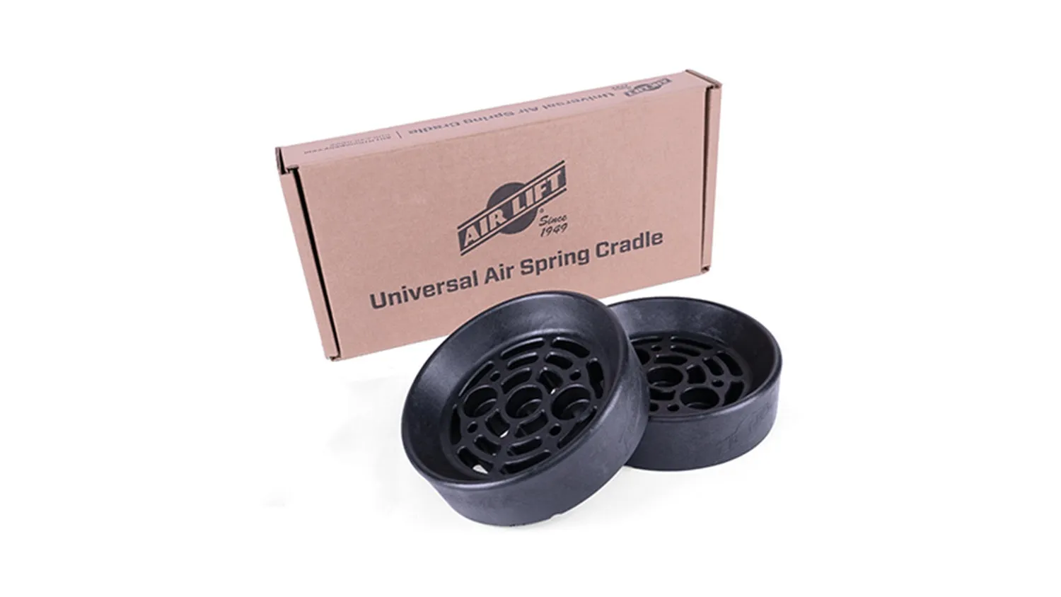 Never sacrifice your towing ability, even if your truck is lifted. Air Lift’s universal air spring cradle allows for full extension of the suspension, providing the air spring a place to set into on compression and during everyday driving. Maintain your towing ability and keep your ride at the height you want. Having your truck lifted is perfect for anyone who wants the look, needs to clear serious obstacles, or wants to retain a full suspension extension. Adding air bags can improve ride quality and prevent your vehicle's rear end from squatting or sagging when weighed down. However, installing air bags may limit your suspension extension if your truck is lifted. Adding Air Lift’s universal air spring cradle allows the air spring to cycle safely and have full suspension travel. The cradle keeps the air bag in place but detached from the lower bracket, letting it react as necessary to the road. This way, you can keep your vehicle’s height without sacrificing a smooth ride and towing abilities. Air Lift’s universal air spring cradle fits all Air Lift bellows-style air spring kits and most other brands. In addition, the cradle’s design allows the ability to mount the included hardware up or down based on the air springs and brackets. The universal air spring cradle kit is made with lightweight, durable resin, recessed mounting holes, and draining holes to help clear water and debris. The kit has two cradles, the hardware needed, and its instruction manual. For over 75 years, Air Lift has been the leader in air suspension products and is committed to delivering quality parts that last. To ensure the highest quality, longevity, and customer satisfaction, the system comes with a two-year warranty and a 60-day, no-questions-asked, money-back guarantee – not to mention Air Lift's reputation for excellent customer service and technical support, should you run into any snags in the installation process.