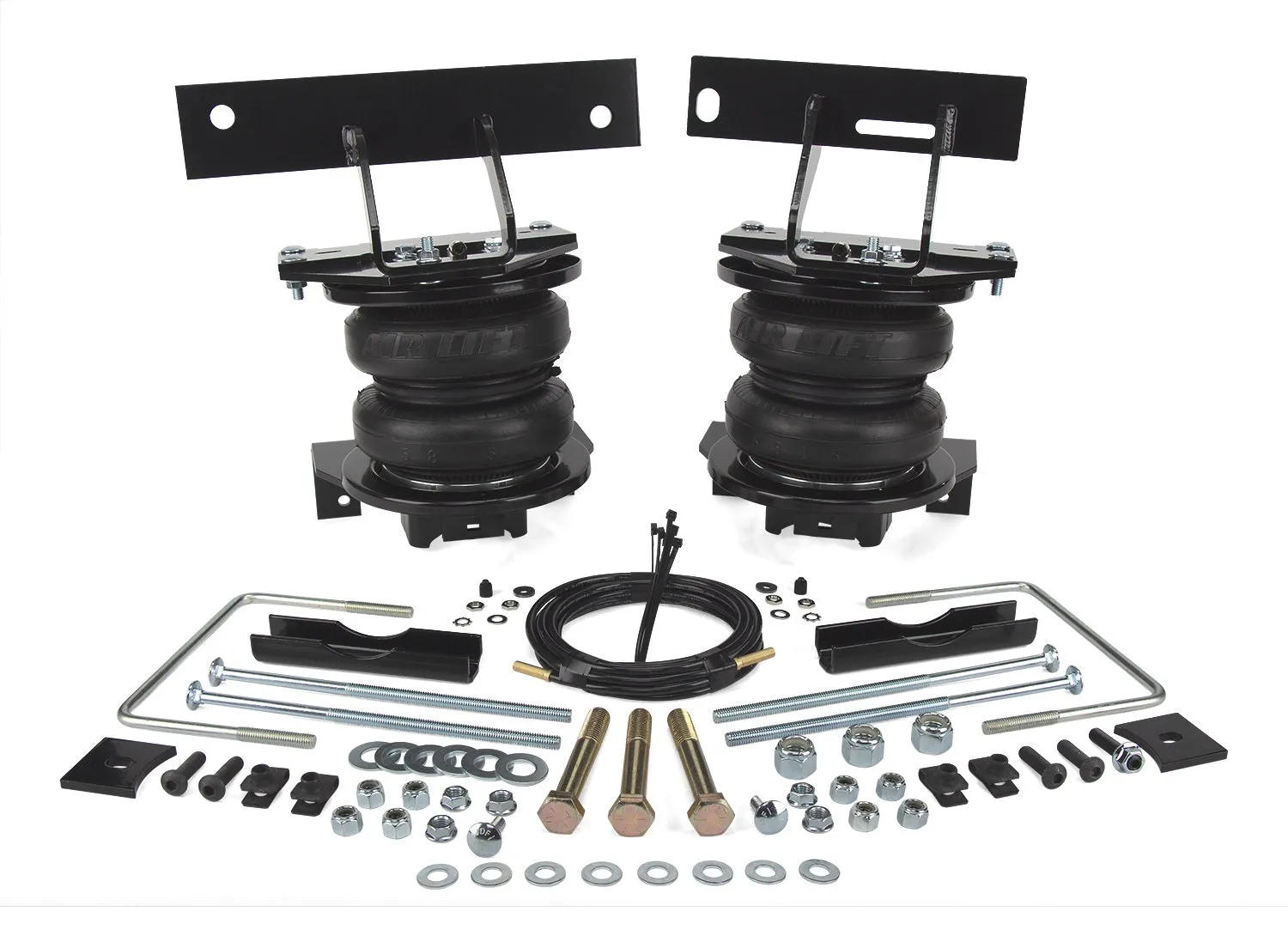 The LoadLifter 7500 XL Ultimate offers support for the heaviest tows with an internal jounce bumper, absorbing shock for the smoothest ride. Air Lift’s fully adjustable, industry-leading air springs are the perfect upgrade for your vehicle, eliminating any issues you might face when towing and hauling. With Air Lift’s LoadLifter 7500 XL Ultimate and the added stability that air springs provide, you can haul safely, knowing that you have optimal braking and steering control. The kit offers up to 7,500 lbs. load-leveling capacity while eliminating squat, trailer sway, body roll and bottoming out for select Ford F-350, dual rear wheel and four-wheel drive. The LoadLifter 7500 XL Ultimate kit is set apart by a pair of massive 7-inch, double-convoluted bellows air springs. The larger air springs allow for better leveling abilities at lower air pressures than similar systems, keeping your cargo safe and secure while ensuring a more comfortable ride. The closed-cell urethane foam jounce bumper inside the air spring provides a cushion of air that absorbs shock, eliminates harsh jarring on rough roads, and protects vehicles carrying heavy loads. An Air Lift exclusive, the kit features upper and lower roll plates for added protection. All end caps are made with an ultra-high-strength nylon composite formula, strong as steel but much lighter and corrosion-proof. The air springs are built like tires, reinforced with 2-ply fabric for maximum strength. With the added stability that air springs provide, you can haul safely, knowing that you have optimal braking and steering control. The LoadLifter 7500 XL Ultimate has up to 20% more air spring volume when compared to Air Lift’s LoadLifter 5000 series. The LoadLifter 7500 XL Ultimate’s air springs are maintenance-free, can run safely on zero air pressure, and are fully adjustable from 5-100 PSI for precise control. Do not exceed the vehicle's gross vehicle weight rating (GVWR).