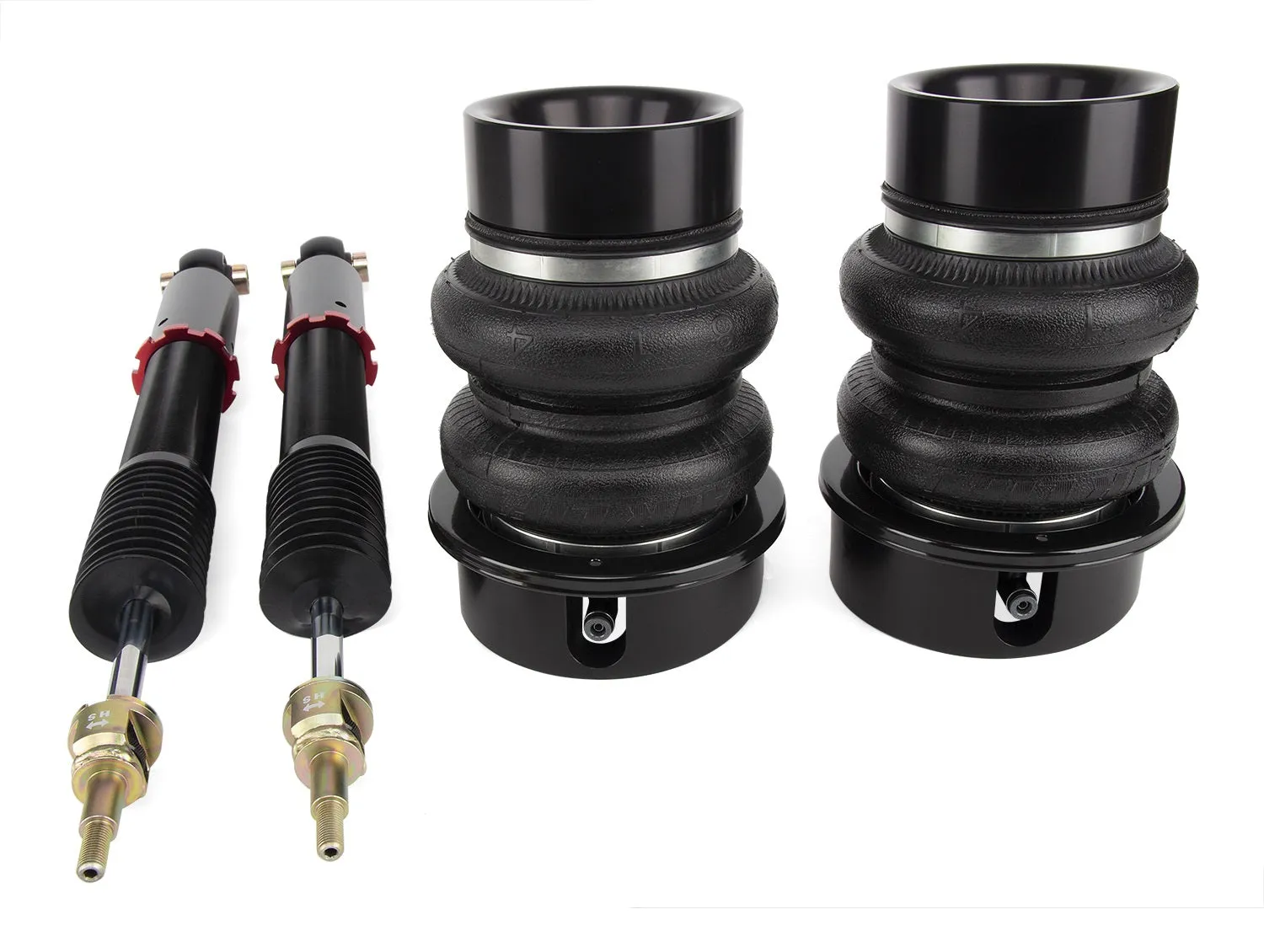 • Adjustable lower perches allow ride height to be changed independently of pressure so the user can dial-in preferred pressure/ride height combination.