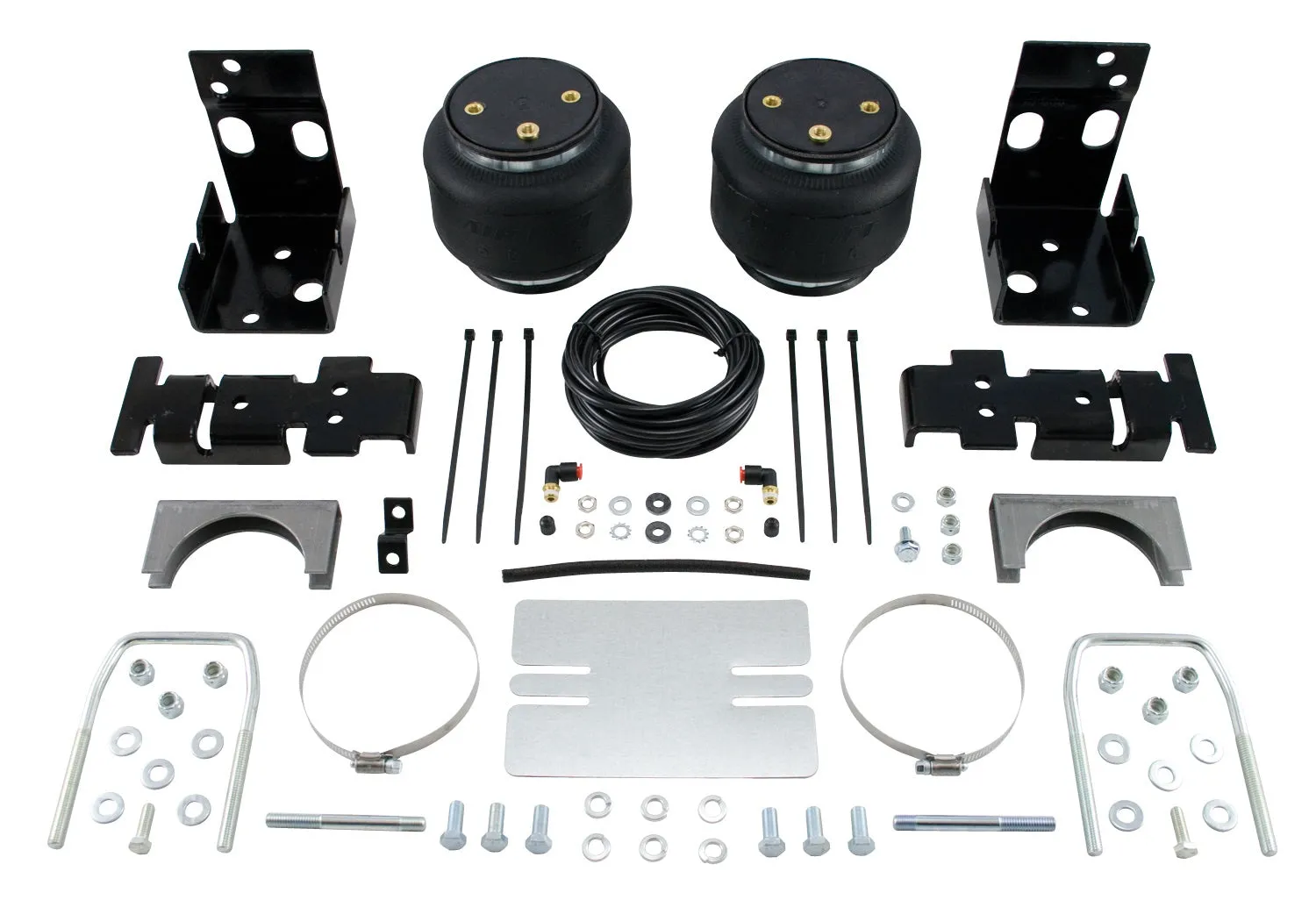 LoadLifter 5000 ULTIMATE adjustable air spring kits feature all of the benefits of our heaviest rated air spring with the addition of an internal jounce bumper inside the spring for the ultimate in ride comfort. An Air Lift exclusive product! Fits vehicles with in-bed hitches. Tow and haul the heaviest loads with safety and comfort with LoadLifter 5000 ULTIMATE. Works with vehicle's leaf springs to provide up to 5,000 lbs. of rear load leveling capacity and keeps the vehicle riding stable, level and comfortable whether loaded or unloaded. Fully adjustable from 5 to 100 PSI. The closed-cell urethane foam jounce bumper inside the ULTIMATE air springs provide a cushion of air that absorbs shock, eliminates harsh jarring on rough roads and protects vehicles carrying heavy loads. Never bottom out again with the ULTIMATE! LoadLifter 5000 ULTIMATE air springs are maintenance free! Safely run with zero air pressure because of the internal jounce bumper. Replaces factory jounce bumper that is sometimes removed when adding air springs. Requires no drilling into frame! Includes industry-exclusive 60 Day No Questions Money Back Guarantee! Includes the most comprehensive Lifetime Warranty in the industry---covers all kit contents including brackets, fittings and air line. Air springs are built like a tire and are reinforced by durable, 2-ply fabric for maximum strength. Exclusive upper and lower roll plates included. Protect the springs from sharp edges, such as brackets or the frame. The kit includes 2 air springs, brackets, air lines, Schrader valve and all of the hardware needed for installation. Includes fully illustrated instruction manual. Add an Air Lift on-board air compressor system to inflate and deflate air springs with the touch of a button from inside or outside of the vehicle.