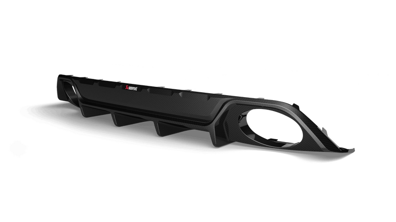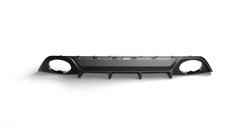 This Rear Carbon Fiber Diffuser - High Glossy comes with red/white Akrapovic logo.