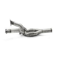 Constructed from high-quality stainless steel, this front link pipe with downpipe set has been designed to fit perfectly onto stock turbos (or turbos where the connection points between the turbos and downpipes have the same shape as on the stock configuration. The Downpipe / Link Pipe Set was developed using technology directly from the racing world. Two larger 92.8 mm insulated downpipes provide optimal flow, and with flanges cast in-house provide a perfect fit. The front link pipe has a stainless-steel collector with custom-made flex tubes. When combined with the Evolution Race Line exhaust, the full system significantly reduces the back pressureand provides an optimized flow with more than a 40% increase for the exhaust gases, while also offering limitless tuning options. ECU remapping is mandatory.