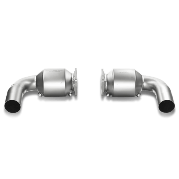 The next option is to replace the stock link pipes with the Akrapovic variant made from titanium and incorporating 100 cpsi high-flow catalysts. These link pipes, when coupled with our titanium center muffler, produce a total weight savings of 8 kg compared with the stock system