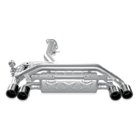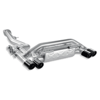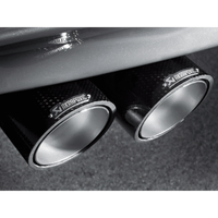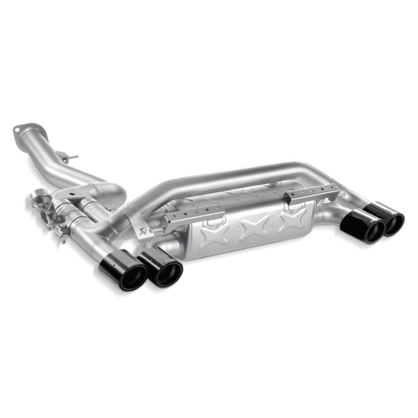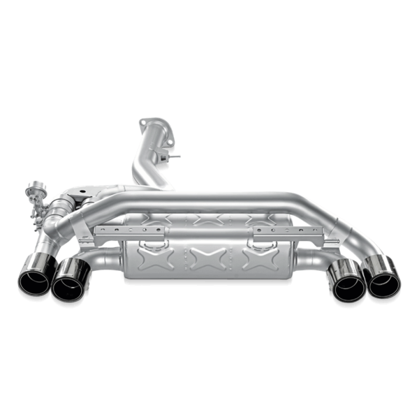 Utilizing a single muffler arrangement, the fully titanium Akrapovic Slip-On is designed to be modular. In its basic mode, all exhaust gases flow through the muffler, giving you a deeper rumble of an exhaust note compared to stock without any drone. However, the muffler system is built in such a way that by replacing a blocking plate with the optional Akrapovic sound kit valve system the driver is able to noticeably increase the volume of the exhaust at the press of a button. Once activated, the majority of the exhaust gases route through the muffler bypass outlets. Even when installed on an otherwise stock vehicle, power gains are achieved and weight reduction realized.