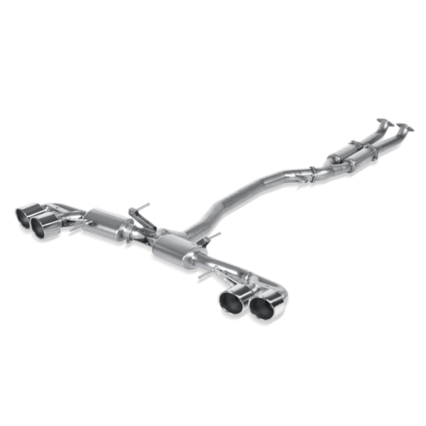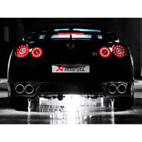 The Nissan GT-R is one of the fastest cars to race on Germany's famous Nurburgring Nordschleife (North Loop). To enhance this already impressive performance, we offer our Akrapovic Slip-On exhaust system made completely of our proprietary titanium. This beautifully crafted sport exhaust achieves weight reduction and delivers power improvement, most noticeably at the top of the rpm range. The sound is also improved, with a deeper, sportier sound delivered without droning, and this perfectly complements the car. The attention to detail can be seen in every component. Even the exhaust tailpipes were designed to resemble the trademark GT-R tail lights. Complete the look with a set of four exquisite tailpipes in titanium or carbon fibre.