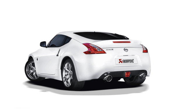 The 370Z from Nissan is a fine sports car in the tradition of Japanese muscle cars but benefits greatly from the Akrapovic treatment. Our finely crafted Slip-On axle back exhaust system is made of high-grade stainless steel and fits the original mounting points perfectly. Installation is a snap. There are power gains not just at or near redline, but across the entire rpm range. The Slip-On sport exaust produces a boost in performance, as well as a weight reduction when compared to stock. The Slip-On system generates a deeper-than-stock tone with the sporty sound youêd expect from the 3.7-liter high-revving engine. Complete the look with a set of two exquisite 125 mm tailpipes in carbon fibre.