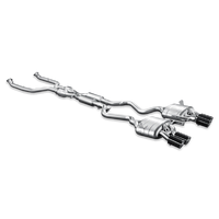 The Evolution performance exhaust system for the BMW M3 consists of dual-outlet mufflers, flow-optimized link pipes, and an X-pipe that incorporates high-flow 100 cpsi sports catalytic convertors and resonators. The power and torque gains of the BMW M3 with the Evolution system are just amazing. A substantial increase is detected over a very wide rpm range, and so it increases responsiveness during all phases of driving. Together with incredible weight savings, the Evolution system dramatically changes the power-to-weight ratio. Our goal was to design a system that delivers a deep, rich growl at cruising speeds while also allowing the driver to enjoy an aggressive roar when driving hard. Complete the look with a set of two exquisite tailpipes in titanium or carbon fibre.