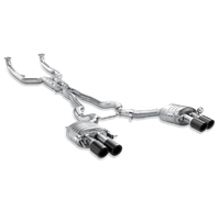 The Evolution exhaust system made of our proprietary titanium consists of newly developed dual-outlet mufflers with exhaust valves, flow-optimized pipes, and a unique cast titanium X-shaped part with resonators. Back pressure is lowered and the M6 benefits from more power throughout the entire range of rpms. It increases responsiveness and an improved power-to-weight ratio has been achieved without removing the catalytic converters. The Evolution performance exhaust offers a deep sporty sound, growing to an aggressive roar when driven hard but without droning. It works well with the M6’s ANC system - just like the valve system, which is regulated through the M6’s settings.