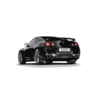 The Evolution performance exhaust, made of our proprietary titanium, is an even better match for the GT-R, complementing its race-inspired looks. Substantial work by the R&D team was required to achieve impressive horsepower and torque output increase over stock, with gains being realized at the redline and throughout the entire rpm range. There are substantial reductions in weight achieved through careful design and the use of light titanium. The power-to-weight ratio improves on both fronts: power increase and weight reduction. The GT-R deserves a great sound and the Akrapovic Evolution system delivers it: deep, loud, and aggressive but without droning. Complete the look with a set of four exquisite tailpipes in titanium or carbon fibre.