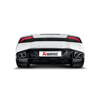 Following the success and experience gained from the Slip-On Line exhaust system that Akrapovic developed for the Lamborghini Gallardo, the new system for the Lamborghini Huracán takes this stunning car to new levels. Precision engineered from a high-grade titanium alloy, which is designed to significantly reduce weight and improve handling, the Slip-On Line has bigger main pipes than the standard system and a specially designed X-part (for cross-flow) in the muffler to reduce back-pressure, increasing power and torque levels right across the rev range. The unique growl from the naturally aspirated V10 engine is improved as the performance grows, delivering a distinctive note that thrills the senses, without any unwanted cabin noise. At lower revs and during cruise operation the valves are closed, producing a deeper and sharper exhaust note, but when the revs rise and the valves open, the full passionate soundtrack of the engine is released to show that the Huracán means business. This exquisite system is perfectly finished with four carbon fibre tailpipes, ensuring that this exhaust looks as good as it sounds and performs.