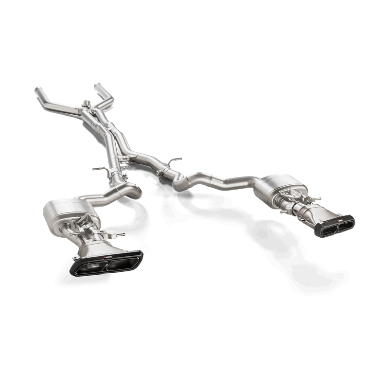 Perfectly formed using specially developed ultra-lightweight titanium alloys, this Akrapovic Evolution Line (Titanium) exhaust is designed to replace the performance exhaust fitted to the Mercedes-AMG E 63 and E 63 S. It is finished with hand-crafted carbon-fibre tailpipes in matte or high gloss finish, visually split with a newly designed cast titanium part. This stunning system also includes other parts cast at the in-house foundry, featuring an active X connection and an additional pair of exhaust valves behind the rear mufflers, designed to provide optimal control of the exhaust sound for the best listening enjoyment. The system retains the signature AMG sound, while making it even throatier and richer, and it provides great acoustic feedback both inside and outside the cabin. An increase in performance and torque through a broad rpm range and a significant weight savings of over 45% makes this a very serious performance upgrade. With optimized gas flow and reduced back pressure, it allows limitless tuning options. Because it is ECE type-approved with no need to remap the ECU or add any other parts, it has a simple plug-and-play installation.