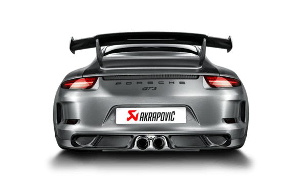The Akrapovic Sports Cup Line system is the second step in the exhaust tuning process. Crafted from top-quality titanium—with parts formed in Akrapovic’s in-house titanium foundry—the Sports Cup Line system has been designed to retain the original Porsche GT3 exhaust manifold, utilizing the existing integrated catalytic convertors. The perfectly balanced titanium end muffler and superbly fitting link pipes are all set off with a pair of beautiful titanium tailpipes. Developed primarily for track use, the Sports Cup Line increases power and torque levels—especially through the important mid-range—and with the huge reduction in weight in the area behind the engine and the rear axle (in comparison to the original system) handling is improved to make the car and exhaust work in perfect harmony. The look of this system can be further enhanced with the addition of the superbly handcrafted high-quality optional carbon- fibre rear diffuser to give even more exclusivity to the Sports Cup Line titanium system and the Porsche GT3.