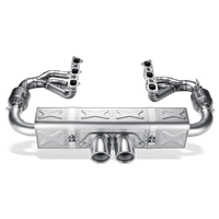 The Evolution Race includes handcrafted titanium headers with 100 cpsi sports catalytic convertors and cast titanium flanges. These headers / catalytic convertors, in conjunction with a titanium center muffler, offer the maximum power increase at the lowest weight configuration for the GT3 line. This system is built for the track with a sound to match. Deep, loud, and aggressive, the Evolution Race performance exhaust system will have your car sounding like a true GT racer. Concrete weight savings behind the rear axle translate into improved weight distribution and handling. In addition to the enhanced acceleration gained by the weight savings, power and torque are also increased. The look is completed with a set of titanium tailpipes and mandatory rear carbon fibre lip 01-08-28-0001.