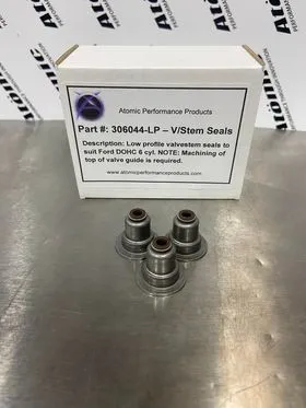 Low profile Top Hat valvestem seal to suit Ford DOHC 6 cyl engines. Suit high lift cams - 6mm valvestem. Set of 24. NOTE: Valve guides must be trimmed down 2.00mm to suit.