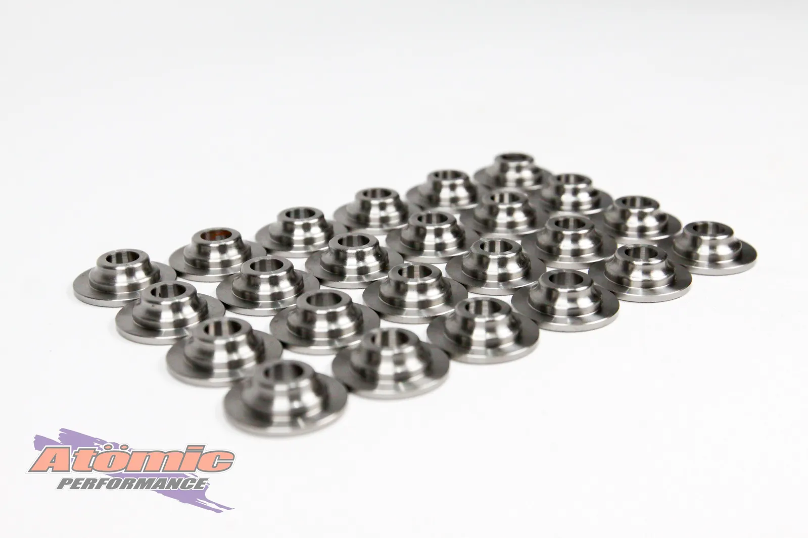 CNC-machined from premium aerospace-grade titanium, these retainers are ultra-light yet incredibly strong, making them ideal for engines with aftermarket camshafts, high-lift profiles, stiffer valve springs, or those chasing big RPM targets. Used in every top-tier Atomic engine build, this is the go-to upgrade for serious Barra heads.