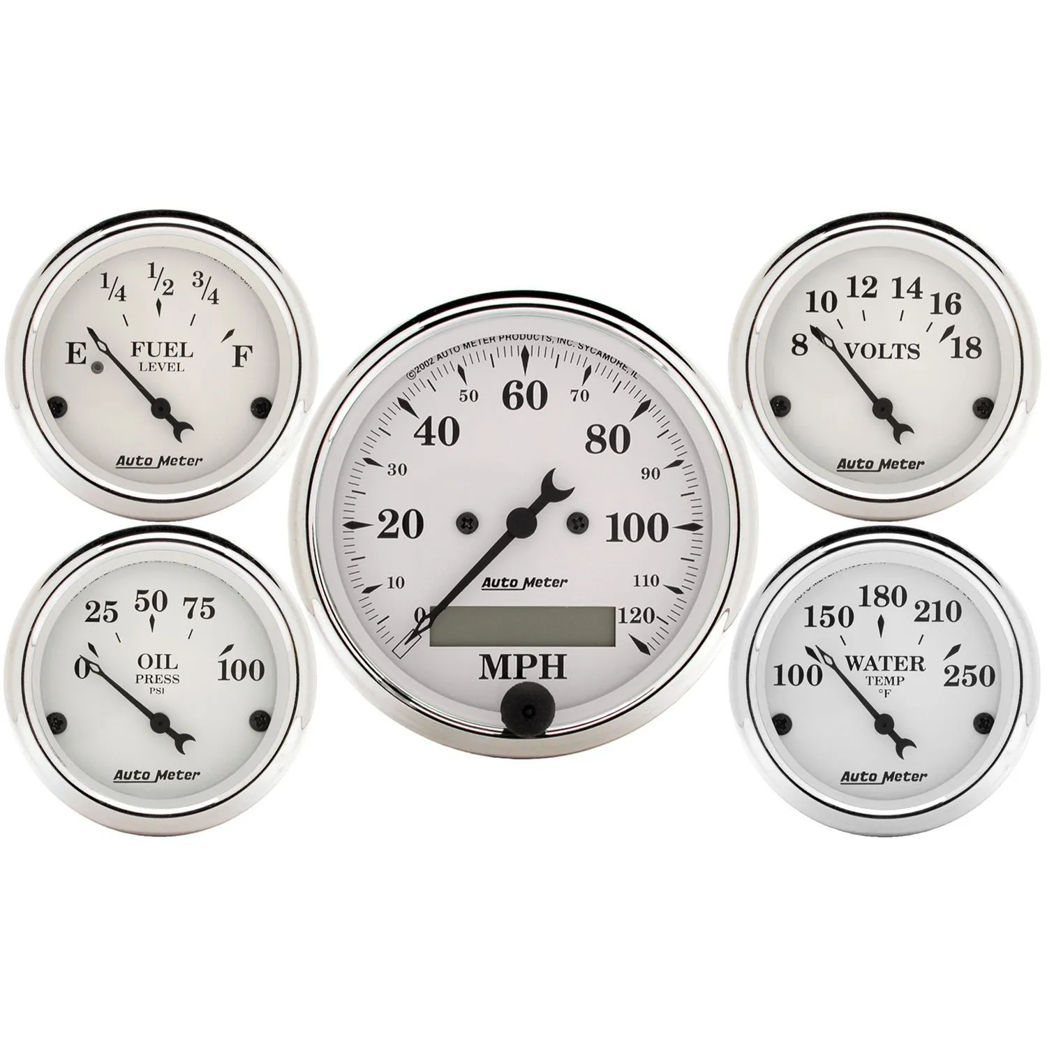 AutoMeter has brought together the most popular gauges into a simple kit. The kit includes a speedometer, water temperature, oil pressure, fuel level, and voltmeter. All senders included where applicable.