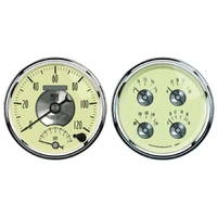 Sometimes space is limited. The AutoMeter Quad Gauge provides a solution to limited dashboard space while providing a clean look. Individual AutoMeter air core meter movements for each function provide the accuracy and durability required by even the most demanding applications. Includes a single wire 1/8” NPT temperature sender and a 1/8” NPT oil pressure sender. The voltmeter reads from 8-18v on negative ground electrical systems and fuel level resistance range is 240 ohms empty to 33 ohms full (compatible with AutoMeter’s 3262 fuel level sender).