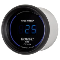 Incredibly high accuracy in both vacuum and boost, AutoMeter’s Digital Boost/Vac gauge is engineered to provide the best possible accuracy in applications ranging from 30 in/Hg to 30 psi. Our patented gauge technology allows the gauge to calibrate on every startup to compensate for altitude, barometric pressure and other atmospheric conditions, assuring you of the most precise reading possible. A direct plug in wiring harness is included for ease of installation. A high pressure digital boost only gauge is also available for diesel or high boost gasoline applications.