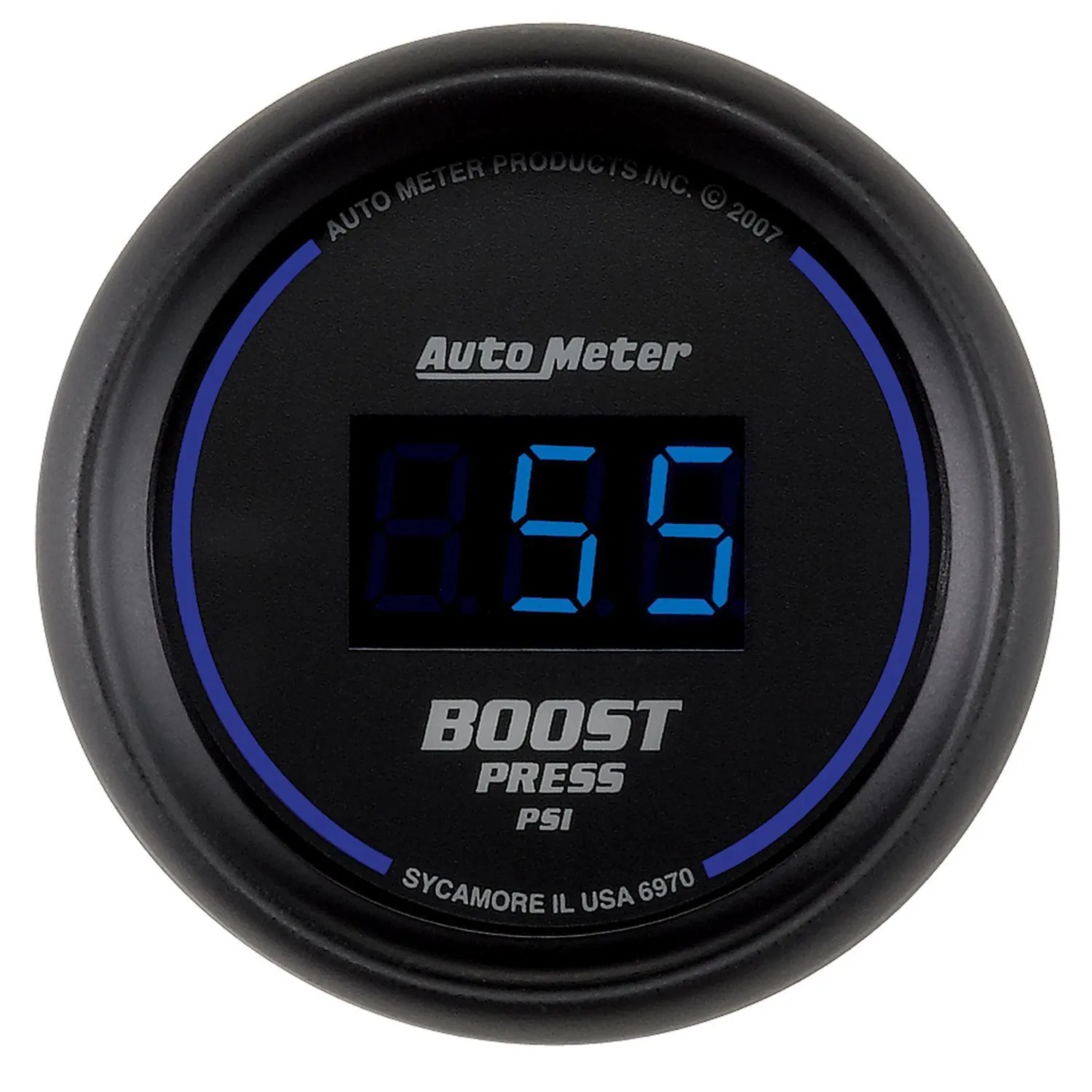 An ultra high precision digital gauge engineered for diesel applications but also perfect on higher boost gasoline engines. Using AutoMeter’s advanced 1/8” NPT solid state pressure transducer, this gauge provides the ultimate in accuracy for forced induction applications producing from 5-60 psi. A direct plug in wiring harness is included for ease of installation. Digital Boost/Vacuum gauges are also available for gasoline or lower boost applications.
