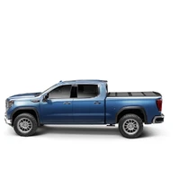 The best-selling truck bed cover in the world just got better. Introducing the new and improved RealTruck BAKFlip® MX4 (GEN 3)—an evolution of RealTruck's most popular tonneau cover. This next-generation upgrade builds on everything truck owners already love about MX4, now enhanced with improved functionality, greater durability, and elevated security. The new and improved BAKFlip MX4 is constructed primarily from alloy materials, including heavy-duty aluminum top panels and side rails. Reinforced with high-density polymer cores, each panel delivers a 22 percent increase in overall strength compared to the original model. Security is also enhanced. In addition to BAK's patented auto-latching system, which automatically secures the cover when closed, the BAKFlip MX4 (GEN 3) features re-engineered lock components for improved resistance to forced entry compared to the GEN 2. No matter the cargo you're transporting, you can rest assured knowing your gear's protected. When the weather turns, the BAKFlip MX4 (GEN 3) holds strong. Revised EPDM rubber perimeter seals and tight-fit clamps provide our best seal yet, preventing seepage between the bed cover and bed rails. At the rear of the cover, a 13 percent longer dual-action tailgate seal provides weather protection for the tailgate. This innovative design also improves operation, maintaining factory tailgate functionality regardless of the cover's position. The BAKFlip MX4 isn't only durable, it's also sleek and stylish. Unlike competitors, the BAKFlip MX4 sits flush with your pickup's bed rails, practically disappearing into your truck's profile. And with a sleek, textured matte black finish across all surfaces, the MX4 looks great whether open or closed.