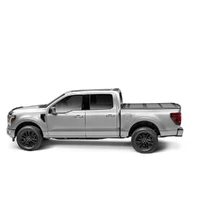 The best-selling truck bed cover in the world just got better. Introducing the new and improved RealTruck BAKFlip® MX4 (GEN 3)—an evolution of RealTruck's most popular tonneau cover. This next-generation upgrade builds on everything truck owners already love about MX4, now enhanced with improved functionality, greater durability, and elevated security. The new and improved BAKFlip MX4 is constructed primarily from alloy materials, including heavy-duty aluminum top panels and side rails. Reinforced with high-density polymer cores, each panel delivers a 22 percent increase in overall strength compared to the original model. Security is also enhanced. In addition to BAK's patented auto-latching system, which automatically secures the cover when closed, the BAKFlip MX4 (GEN 3) features re-engineered lock components for improved resistance to forced entry compared to the GEN 2. No matter the cargo you're transporting, you can rest assured knowing your gear's protected. When the weather turns, the BAKFlip MX4 (GEN 3) holds strong. Revised EPDM rubber perimeter seals and tight-fit clamps provide our best seal yet, preventing seepage between the bed cover and bed rails. At the rear of the cover, a 13 percent longer dual-action tailgate seal provides weather protection for the tailgate. This innovative design also improves operation, maintaining factory tailgate functionality regardless of the cover's position. The BAKFlip MX4 isn't only durable, it's also sleek and stylish. Unlike competitors, the BAKFlip MX4 sits flush with your pickup's bed rails, practically disappearing into your truck's profile. And with a sleek, textured matte black finish across all surfaces, the MX4 looks great whether open or closed.