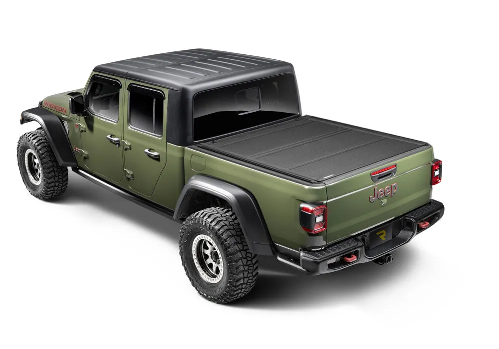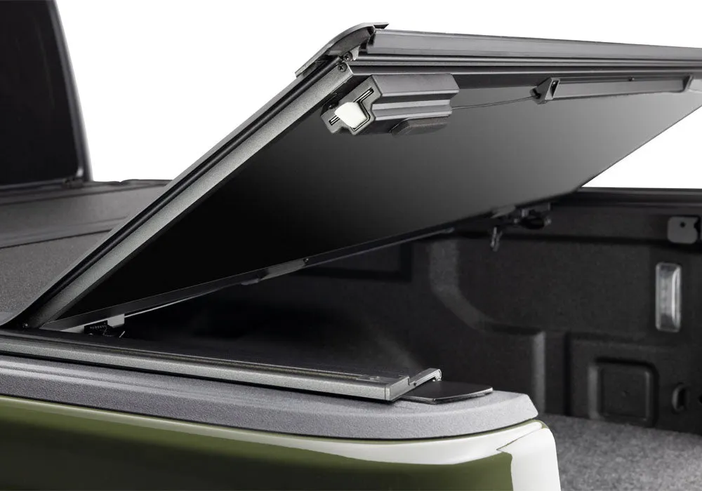 The BAKFlip MX4 TS from RealTruck is our #1 best-selling truck bed cover with easy rack compatibility. This top-of-the-line hard-folding cover is engineered to combine versatility and resilience, making it the ideal choice for truck owners who demand performance from their vehicles. While the BAKFlip MX4 TS sets the standard for keeping your cargo on lockdown, it raises the bar for versatility. Integrated T-slot channels in the bed rails make it easier than ever to add aftermarket crossbars, racks, cargo baskets, carriers, and a variety of cargo accessories in an instant. When was the last time you made perfect use of the space above your truck bed? The BAKFlip MX4 TS truck bed cover features a low-profile design constructed from the highest quality materials, including heavy-duty aluminum top panels finished with a matte black specialty automotive coating that’s scratch and dent-resistant and practically immune to UV-fading. Unlike comparable soft-folding covers, you can't slice through this cover with a pocketknife. The BAKFlip MX4 TS sits low and flush with your truck's bed caps yet offers heavyweight cargo protection for whatever you haul. With the BAKFlip MX4 TS, full bed access is always quick and easy. Just flip the panels forward to the cab, engage the integrated prop rods to secure the cover, and you’re ready to go. Whether you’re exploring the wilderness, out on a family adventure, or hauling gear to the job site, you’re guaranteed that your bed cover will perform.