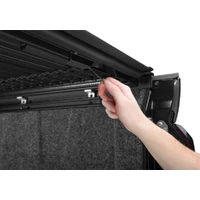 The new BAK Revolver X4s is the third generation of America's #1 selling premium hard rolling cover, now with exciting new features. The Revolver X4s is a bed cover engineered for real-world durability. With NEW matte black heavy-duty aluminum slats wrapped in industrial-grade vinyl and a matte black finish, top-to-bottom, the X4s delivers a modern, stylish appearance. With the cover closed, the patented rotational locking system secures the X4s for the entire length of the bed, on both sides, providing unrivaled strength and security. When open, the X4s cover rolls forward smoothly, storing securely with a durable strap and buckle system. This design gives you full access to your truck bed and does not interfere with your rear view mirror sightlines or block the third brake light. With revised premium black aluminum slats, newly designed side seals, and finished rear corner caps, the Revolver X4s bed cover achieves a new level of refinement for your truck. Best of all, it's backed by an impressive 5-year warranty. Expect More.
