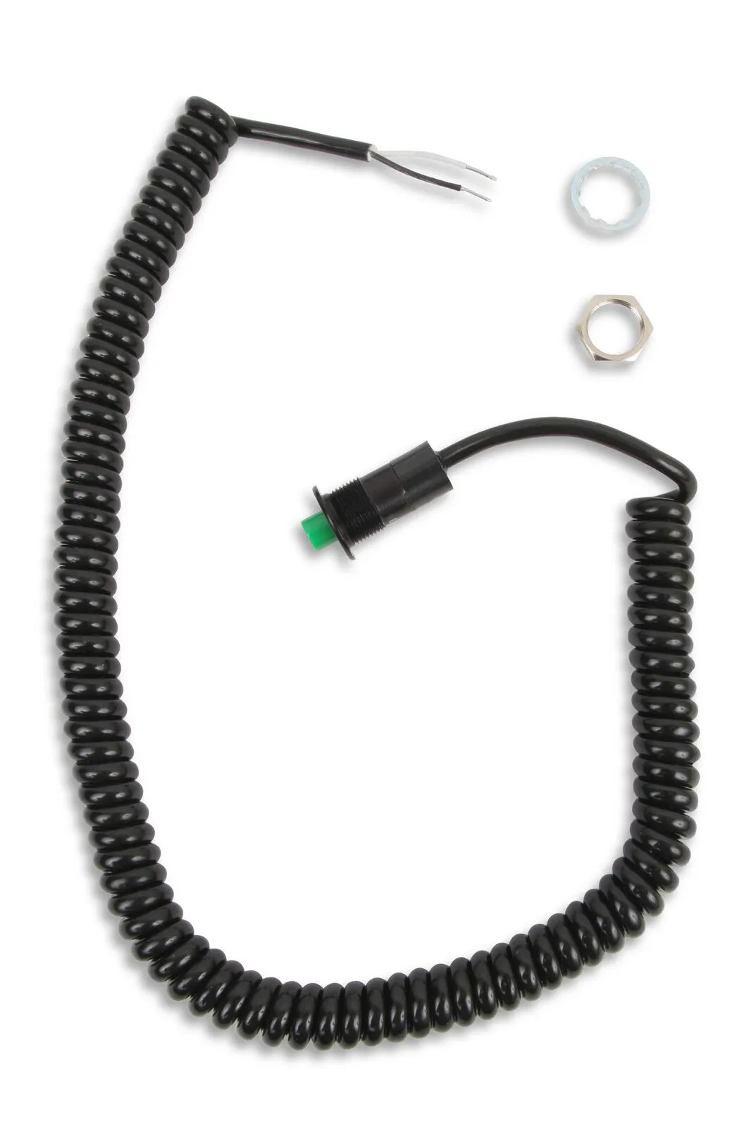 The B&M universal remote button and spiral cord is a great all-around unit and is ideal for bracket racing. This momentary switch can be used for activating a trans-brake, a line/loc or launch control, nitrous system or any other accessory requiring momentary power. The base of the switch includes a 5/8" - 24 tpi threaded section with a lock nut for ease of installation and the switch rated for up to 10 amp duty.