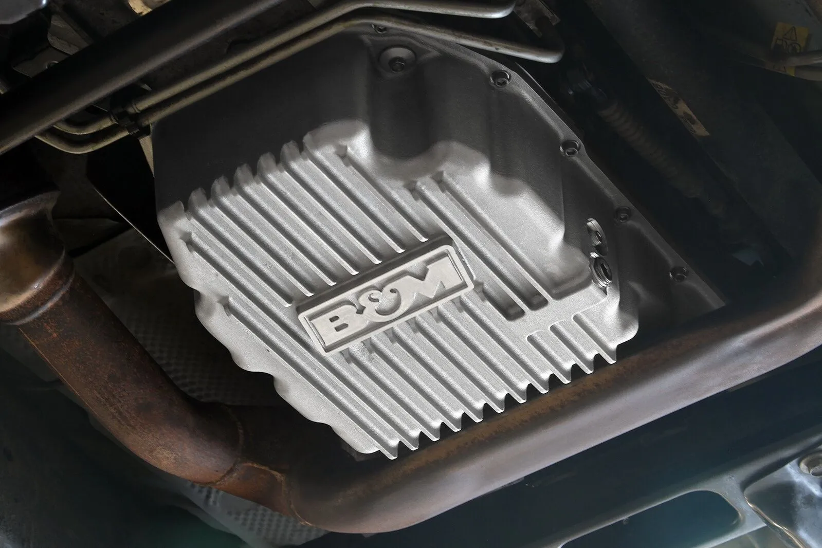 Our Hi-Tek deep transmission pans are constructed from A356-T6 hardened aluminum and are cast with integral cooling fins for maximum temperature reduction and strength. The deep pan design increases fluid capacity by 3.82 quarts over the stock O.E. (original equipment) pan. All of these features combine to help dissipate heat quicker netting lower transmission and fluid temperatures, leading to a prolonged transmission life. Other features of this popular pan include a drain port with a magnetic drain plug for clean and easy servicing. Also includes a 1/8-inch NPT (national pipe thread) temperature sensor port for easily adding a temp gauge to monitor transmission temperatures while daily driving, towing, or racing. Includes detailed instructions for easy installation.