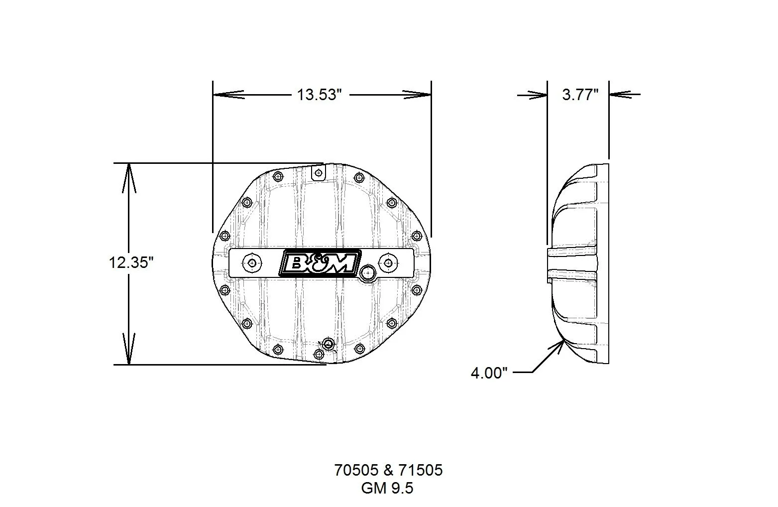 Our engineers designed the line of Hi-Tek differential covers to not only look good but address a number of weaknesses of the factory stamped steel covers. First, they started by constructing the covers of thick A356.0-T6 aluminum, which dissipates heat much faster than the factory steel unit keeping the fluid temperature lower under high-stress loads vs. a steel cover. Then for added durability, we added a reinforced center bar for extra strength along with load bolts to help prevent bearing cap deflection under severe loads. The internal shape of the cover retains the smooth round back internally to help keep the fluid flow going over the ring gear to properly lubricate the gears and bearings. Additional features include a magnetic drain plug for catching ferrous metal particles, machined B&M logo and all necessary hardware and easy to follow detailed instructions for a quick and simple installation you can do at home. Note: Gasket not included.