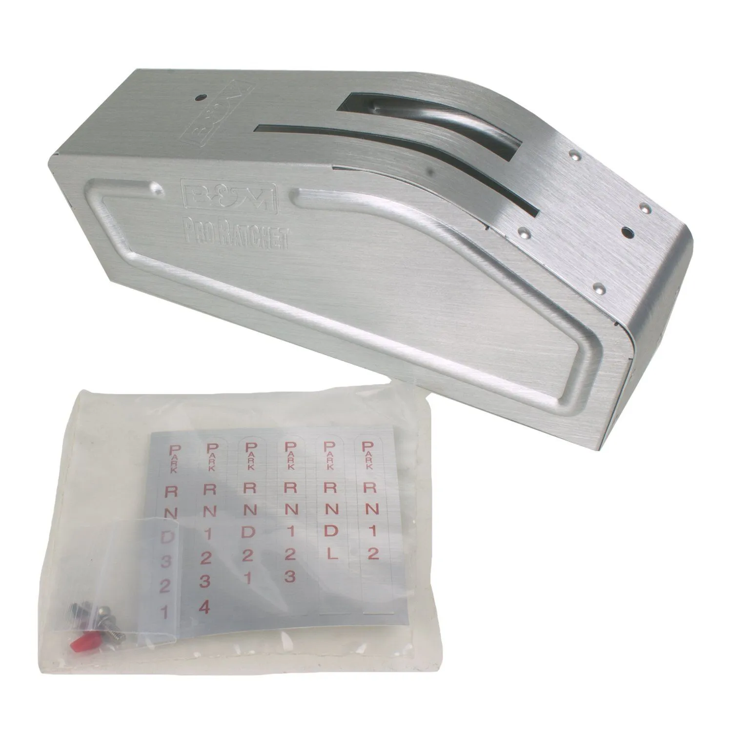 Refresh the look of your B&M Pro Ratchet shifter with this replacement shifter cover. Features a brushed aluminum finished, embossed B&M logo, and comes with forward and reverse shift pattern gear indicator decals. Fits B&M part numbers 80840 and 80842.