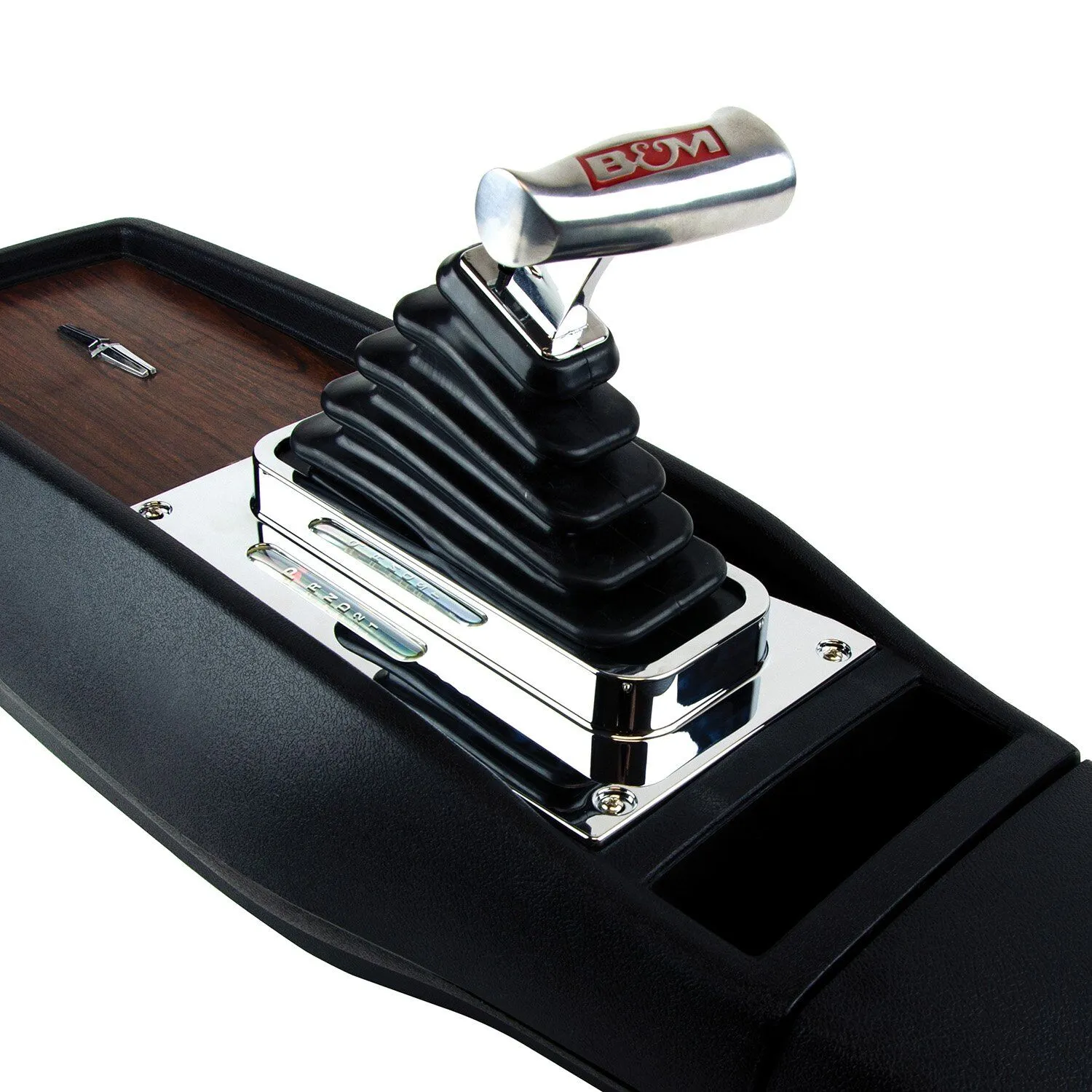 The MegaShifter has it all, form, function and classic style. All these add up to bring you one of the most popular automatic shifters of all time. This console version is specifically designed for a custom fit in your 1968-1969 Camaro factory center console. The positive ratcheting function won't allow you to over shift and miss a gear at that critical moment, along with the reverse lockout feature meets NHRA/IHRA safety rules for those weekend grudge races at the track. The look and feel of the T-handle and accordion style shift boot really shows off the racing heritage of the MegaShifter. Other features include 5-foot shifter cable, cable brackets, transmission shift levers, chrome top console plate with lighted gear indicator and everything needed for an easy at home installation. An optional T-handle with 12-volt button is available separately for actuating a trans-brake, nitrous oxide or other accessories for the hard-core performance enthusiast. This shifter fits most popular GM 3 and 4-speed automatic transmissions. Note: GM 4L60E through 4L85E transmissions with PRNDL switch will require optional kit# 70499.