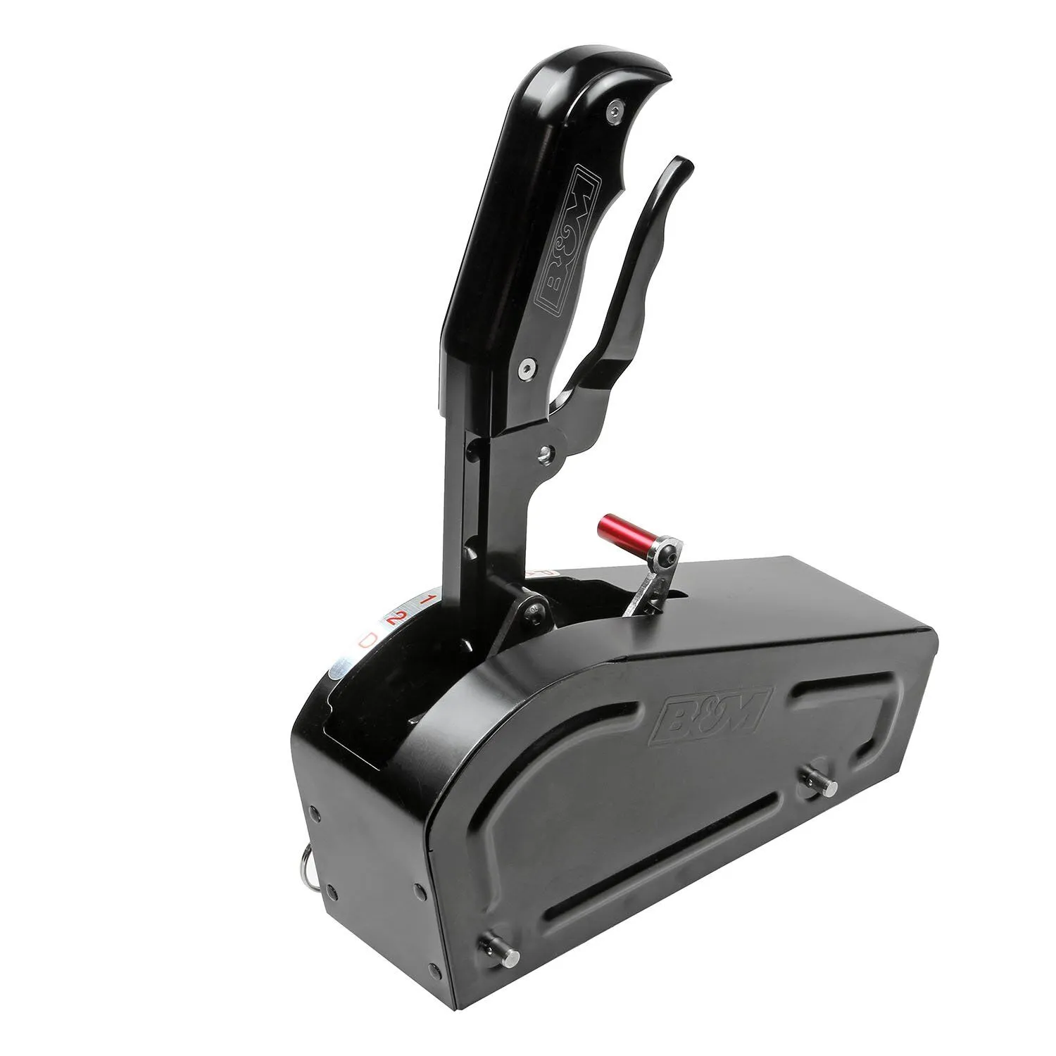 The Stealth Magnum Grip Pro Stick shifter delivers rock-solid performance, mixed with clean design cues and compact size. This is why you see so many Pro Stick shifters at the race track. We start off with a heavy-duty steel base with a hardened steel gate plate, a reverse lockout feature that only requires one hand to operate and complies with NHRA/IHRA safety rules. Then add a black anodized billet aluminum Magnum Grip shift handle with replaceable side grip plates, matching aluminum trigger, and finish it off with a black anodized aluminum cover with quick release pins. You end up with one good looking bullet-proof race shifter. Optional Forward and Reverse shift pattern gate plates are available for most popular 2, 3, and 4-speed transmissions. This model Pro Stick comes out of the box ready for action for most popular 3-speed transmissions, includes a 5-foot Super Duty shift cable, brackets, levers, hardware, and detailed instructions for an easy installation.