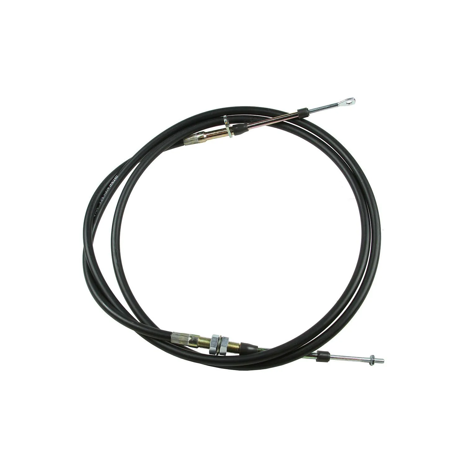 B&M hard-core Super Duty Race shifter cables are available with a black cable housing for most B&M shifters. These are available in 3, 4, 5, or 8-foot lengths. It's properly clearanced to reduce backlash to within .015-in/ft. and has a large 0.375 inch 'long-lay' (stiffer, less prone to kinking) outer jacket for durability and dependability. The cable features an eyelet at one end to connect to the shifter, and a 10-32 threaded end at the transmission side of the cable and has a 2.50-inch stroke. This is the same type of cable supplied when you purchase a B&M Race shifter.