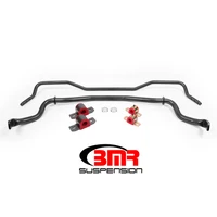 BMR Suspension's SB043 front and rear sway bar kit was designed by factoring in the vehicle weight, application, motion ratio, coil spring rate, and adjustability requirements. Manufactured from heavy-duty 35mm (front) and 25mm (rear)DOM steel tubing, the SB043 is cold formed to better resist torsional fatigue and retain its "memory" far longer than the hot-formed bars used by many competitors. The sway bar is CNC-formed for exact manufacturing tolerances and repeatable high quality.Thrust washers are welded to the front bar to locate the sway bar bushing mounts. This is critical as it properly locates the sway bar and prevents lateral movement during hard cornering maneuvers The SB043 attaches to your S550 Mustang with polyurethane bushings, reducing the deflection from the stock rubber bushings. These bushings are molded from 88-durometer, low-deflection, polyurethane, and are internally fluted to keep grease in the bushing. BMR Suspension designed the SB043 sway bar kit for street performance, autocross, and road race applications. The large adjustable sway bars' three positions give you the versatility to drive to and from the road course or autocross and still out handle the competition with the same sway bars. The SB043 front sway bar gives you a 28%-70% increase in sway bar rate, and the rear bar gives you a 63%-208% increase in rate over the stock bar. These rate increases and adjustability allow you to fine-tune the handling characteristics of your S550 Mustang so you can drive harder through corners with minimal body roll. The hollow design allows for loads of strength in the lightest package possible. This means increased performance with no sacrifices. The SB043 attaches to your Mustang with 88-durometer polyurethane bushings, reducing the deflection from the stock rubber bushings. This allows for more sway bar control, which equals better handling.
