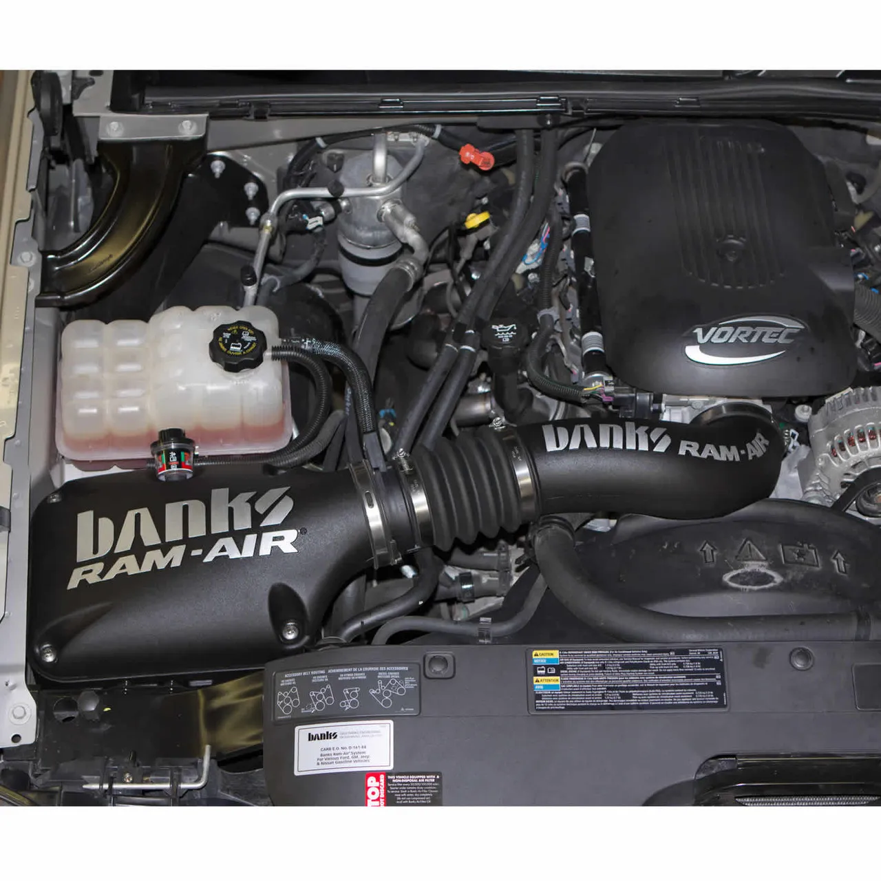 Banks Ram-Air Superiority. (For 4.8L, 5.3L, 6.0L and 6.2L only) Banks Ram-Air Intake feeds your Chevy/GMC gas engine cooler, denser, outside air for greater power and fuel economy. Its performance is extensively tested and validated in the computer using Computational Fluid Dynamics software, on the flowbench, and later on the vehicle. Let the others build and ship: Ram-Air's performance is proven, again and again! Note: This product does not fit 2500 or 3500 pickup trucks. Banks Ram-Air for Chevy/GMC V8's. 50 State Compliant CARB E.O. D-161-103