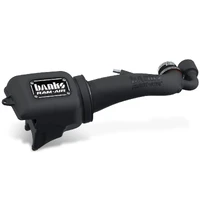 The Ram-Air cold air intake adds a tested best-in-class airflow of 782 CFM, a gain of 82% over stock, and 21.6% over its closest competitor. The system produces lower temperature air at higher pressure providing air density right at the throttle inlet. As a result, the Banks Ram-Air system boasts a 38% air density improvement compared to the stock intake, two times the increase of its closest competitor. This lower temperature air provides more thermal headroom before the engine hits the detonation limit of the fuel, resulting in more power on hot days. Its durable molded plastic housing is fully enclosed, keeping power-robbing hot air in the engine bay where it belongs and not in the intake system. At the heart of the Ram-Air system is Banks’ new Big-Ass Filter element which is the largest and least restrictive in its class. Like all Banks Ram-Air intakes, the system was designed using computational fluid dynamics, followed by rigorous testing on the flow bench, dynamometer and on-road driving. Available in both oiled and dry variations, Banks’ new Big-Ass filters offer 672 square inches of surface area, 21% more than their closest competitor. This allows for greater dirt collection and more miles between cleaning. The Ram-Air advantage becomes even more pronounced the dirtier the filter gets. Competitive filters clog up and become restrictive long before the Big-Ass Filter. Superior filtration is accomplished by using a proprietary multi-layer woven cloth that keeps even the finest dirt and debris out of the intake system while providing maximum airflow. The Ram-Air also offers an appealing growl under acceleration while utilizing a Helmholtz resonator to eliminate the annoying drone found with competitive intake systems. US Patent #10,138,851 B2; 50 State Compliant CARB E.O. D-161-151 EO for 2018-2021; in-process for 2022-23