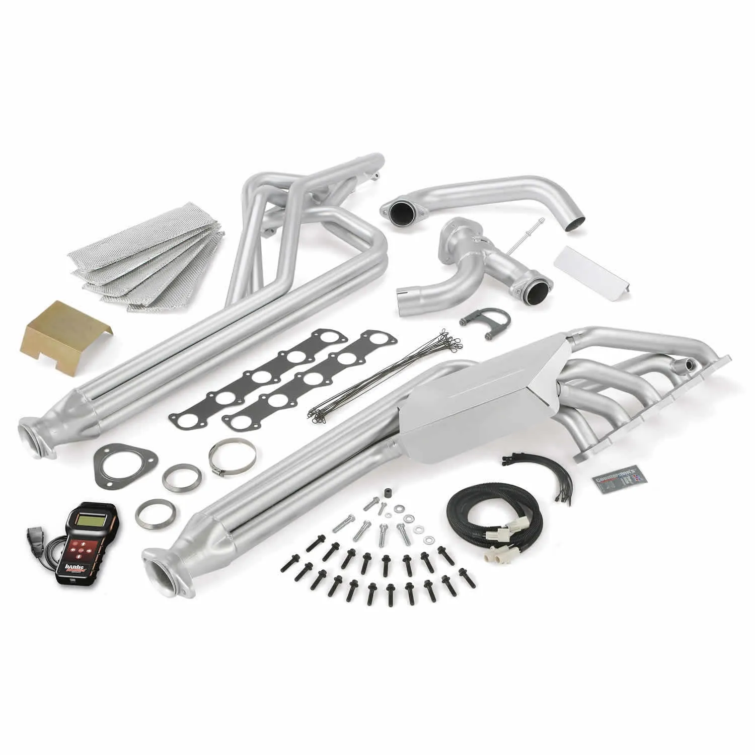 Virtually indestructible 100 percent stainless TorqueTubes maximize exhaust extraction, unleashing gobs of torque. Exclusive tuned-length, parallel 5-tube exhaust manifolds designed specifically for motorhomes. 5-Year Limited stainless steel construction never cracks or blows. Mandrel-formed tubes tune exhaust flow for maximum torque. Patented PowerPickle pulse converter maximizes exhaust extraction (see the big PowerPickle). 5/8 inch thick flanges never warp. Flanges welded on both sides, then milled flat. Hardware included. 5-Year Limited Warranty. Banks streamlined, stainless steel TorqueTubes are the industry's only parallel 5-tube exhaust manifolds for RVs. Unlike competitors who add a separate tube length to a 4-tube formation, Banks integrates five tuned-length tubes into a design that allows rotational firing of the cylinders through the exhaust, minimizing backpressure and maximizing torque. The thick, 5/8 inch flanges never warp or leak. Maximize exhaust extraction and torque. And check out that amazing PowerPickle! 5-Year Limited Warranty Torque Tube Exhaust Header System with AutoMind Programmer for use with 2011-2015 Ford 6.8L V10 Class-A Motorhome Key Features: Virtually indestructible 100 percent Stainless Steel Mandrel-formed tubes tune exhaust flow for maximum torque Maximize exhaust extraction Flanges welded on both sides, then milled flat Seamless high-velocity collector Pulls exhaust and slashes backpressure Exclusive tuned-length parallel 5-tube design Patented PowerPickle pulse converter No sealant or gaskets required 5/8 inch thick flanges won't warp or flex Includes Y-pipe, heat shielding and AutoMind US Patent #8,468,812 B1 49 State Compliant Not for sale in California