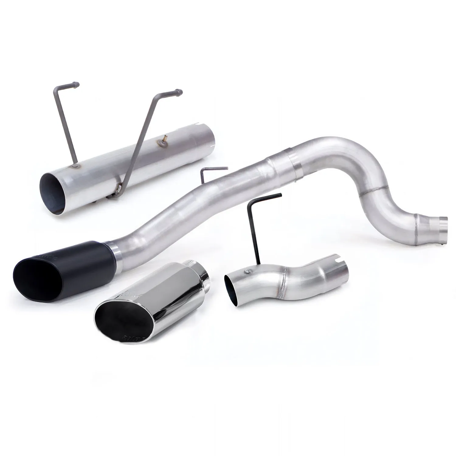 Stainless constant-diameter pipes and straight-thru muffler nearly doubles flow. Lower exhaust temps. Virtually no backpressure. Rich, throaty sound. Monster exhaust system flows better than stock and virtually eliminates backpressure. The streamlined intermediate pipe(s) and tailpipe are formed of stainless, heavy-wall tubing with constant-diameter bends to maximize flow and lower exhaust gas temps. Banks replaces the factory's restrictive muffler with a polished-stainless steel Monster muffler, featuring a straight-through flow-path with a Banks-designed expansion chamber which dissipates the annoying mid-range exhaust drone that's so prominent in competitors' straight-through mufflers. The muffler utilizes spun ceramic, very-high-temperature packing, more than doubles the stock flow and delivers an authoritative - but never intrusive - exhaust sound. A stainless steel tailpipe tip in your choice of polished chrome-over stainless or high-temp black sports a rolled edge. And to help keep it looking good, there's a 1/2 inch air gap to keep heat from tarnishing the finish. An adjustable clamp lets you position it on the tailpipe just right.