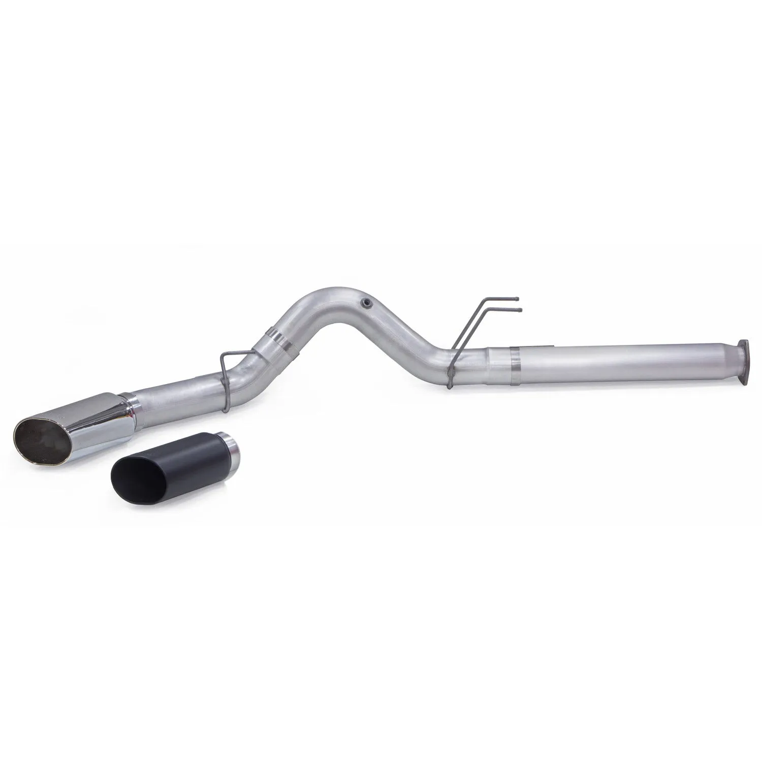 Stainless constant-diameter pipes and straight-thru muffler nearly doubles flow. Lower exhaust temps. Virtually no backpressure. Rich, throaty sound. Monster exhaust system flows better than stock and virtually eliminates backpressure. The streamlined intermediate pipe(s) and tailpipe are formed of stainless, heavy-wall tubing with constant-diameter bends to maximize flow and lower exhaust gas temps. Banks replaces the factory's restrictive muffler with a polished-stainless steel Monster muffler, featuring a straight-through flow-path with a Banks-designed expansion chamber which dissipates the annoying mid-range exhaust drone that's so prominent in competitors' straight-through mufflers. The muffler utilizes spun ceramic, very-high-temperature packing, more than doubles the stock flow and delivers an authoritative - but never intrusive - exhaust sound. A stainless steel tailpipe tip in your choice of polished chrome-over stainless or high-temp black sports a rolled edge. And to help keep it looking good, there's a 1/2 inch air gap to keep heat from tarnishing the finish. An adjustable clamp lets you position it on the tailpipe just right.