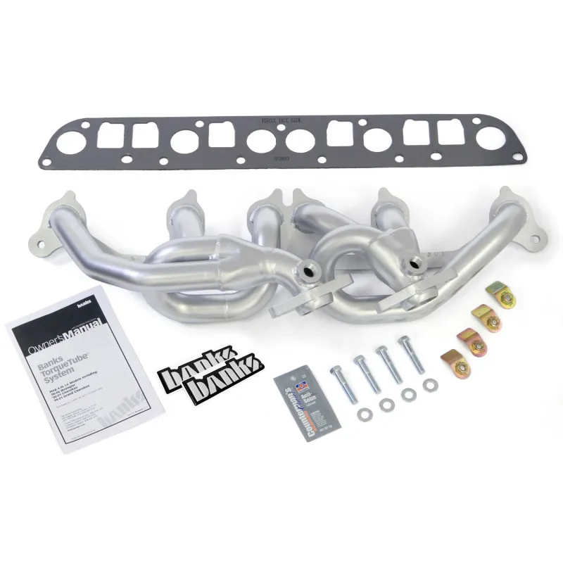 Heavy 400 stainless replaces crack-prone stock piece; bolts on. Thick 5/8 inch flange is double welded, machined dead flat and precisely fitted to resist warping and cracking. With more power, quicker acceleration and tougher construction than ever, the Banks TorqueTube for the Jeep 4.0 liter out muscles any competitive exhaust manifold: period! Made from super-durable, mandrel-bent 409 stainless steel tubing and sporting a 5/8 inch-thick precision ported and machined flange. Powering through the roughest terrain is no longer a question. And cracking... a thing of the past when you arm your Jeep with Banks TorqueTubes. Banks TorqueTube Manifold features: Non-deforming manifold outlet seal, Self-aligning exhaust seal will never compress or blow out, Bolts easily to stock exhaust, Manifold tubes fully welded. Each tube is welded to the flange twice, inside and out, Super-duty manifold flanges, 5/8 inch thick flanges never warp or crack, Computer-controlled machining, Precision port-match to cylinder head, Unrestricted Exhaust Ports, Tubes sized and shaped to match cylinder-head exhaust port, Precision-milled manifold flange, Milled dead-flat after welding (for durability and a perfect seal every time), Stainless Steel Sustains exposure to ultra-high temps for superior durability, Mandrel-bent tubing for better airflow